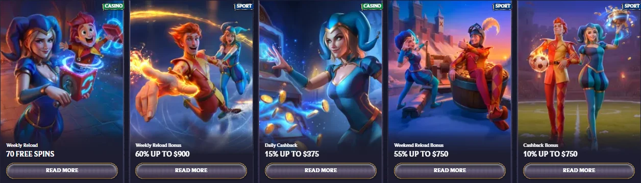 New players get a multi-stage welcome package with a match bonus across early deposits and several batches of free spins. Returning players have access to weekend reloads, weekly cashback, free spin drops on new slots, tournaments and a tiered VIP club with personalised rewards.